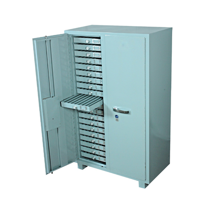 The paraffin tissue block cabinet is powder coated designed for keeping blocks embedded in embedding rings/disposable cassettes in rows. The cabinet is made out of galvanized steel sheet duly powder coated. The cabinet have two doors with lock. The cabinet have multiples drawers each drawer to have a handle. The drawers are also made of powder coated galvanized steel sheet. The drawer is suitably designed to keep the blocks one after the other in rows for easy & quick storage & removal. Filling blocks in single rows with individual numbers showing on top. Front index card holder for keeping the record.The cabinet have wheels on the base for shifting.